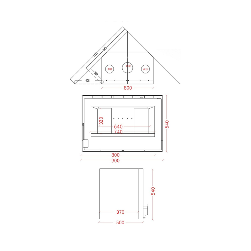 Στην οροφή της εστίας υπάρχουν δύο έξοδοι που επιτρέπουν τη σύνδεση αεραγωγών για τη μεταφορά του ζεστού αέρα σε απόσταση έως και 3 μέτρων. Έτσι, μπορείτε να διοχετεύσετε τη θερμότητα σε άλλα δωμάτια, βελτιστοποιώντας τη θέρμανση ολόκληρου του σπιτιού.