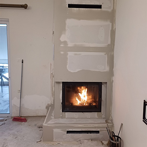 Εγκατάσταση Γωνιακού Ενεργειακού Τζακιού Ξύλου Αερόθερμου Kratki